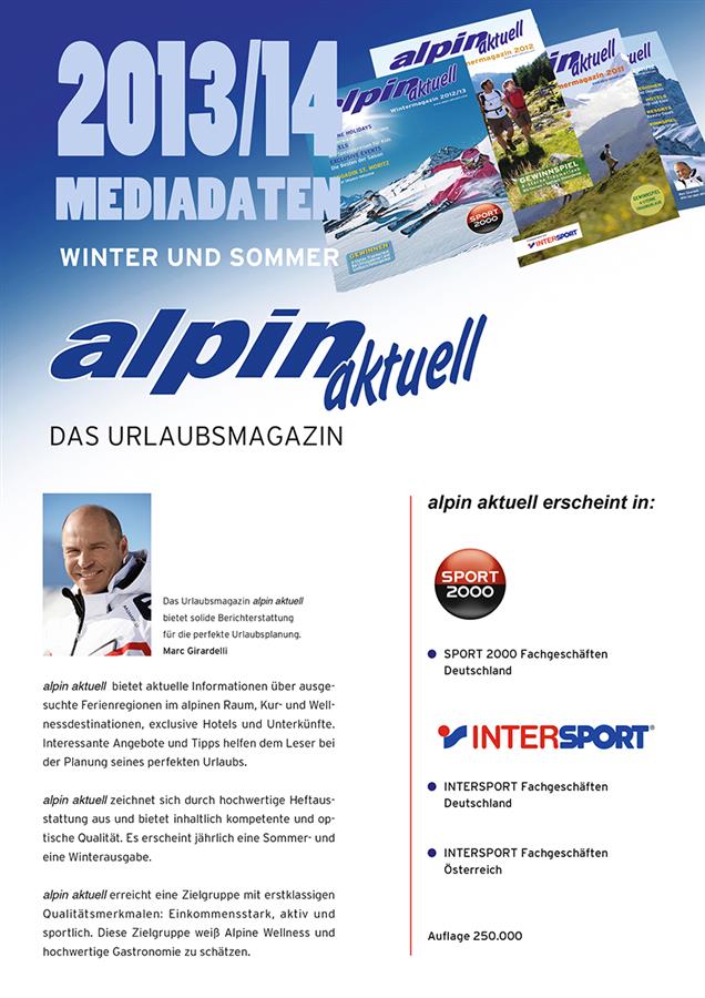 Aktuelle Preise für PR-Berichterstattung und Anzeigen für Sommer und Winter 2013 finden Sie hier: -> Mediadaten (pdf 1,3 MB) |